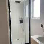 Camping Le Mont Cesar Hotell har ett badrum med en dusch.